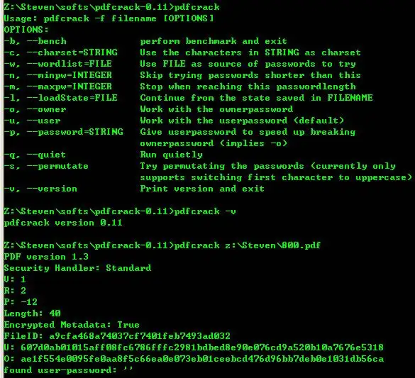 PDFCrack is an open-source, command-line tool designed to recover the passwords used to encrypt PDF (Portable Document Format) files. It is a password recovery tool specifically designed for breaking the password protection on PDF documents when the password is either forgotten or unknown. PDFCrack uses a brute-force attack method, trying every possible combination of characters until it finds the correct password or exhausts all possibilities.