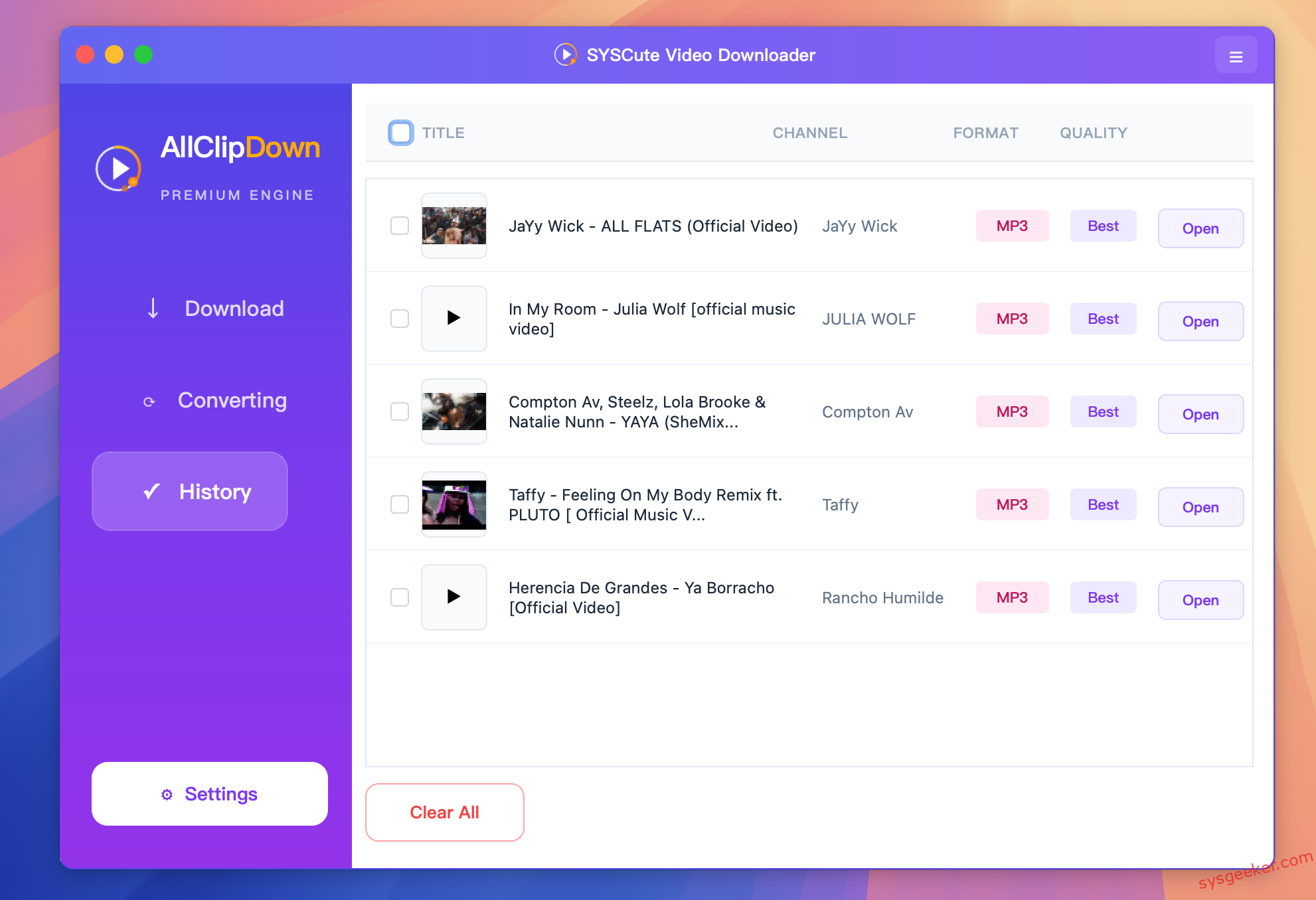 What I like most about AllClipDown is the speed. Downloads start quickly and rarely fail. I also appreciate that it supports multiple platforms instead of just YouTube. It saved me a lot of time compared to online youtube to mp3download sites.