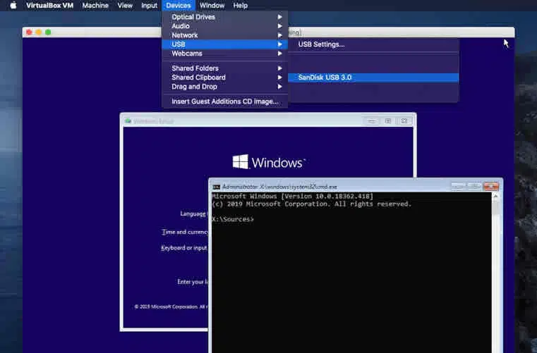 If Bootcamp don't work for you then virtual Machine also worth a try. It is also anther easy way that can be used to make a Windows bootable USB install on a Mac. This part we will run Windows 10 ISO image on VirualBox on a Mac and create a bootable USB installer with command line. There are many vrtual Machine Software out there like VirtualBox, VMware, Parallels Desktop, choose the one you're familiar with and continue. Here we will choose VirtualBox as an example to explain how to create Windows bootable USB without BooCamp.