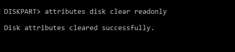 Step 5. Input "attributes disk clear readonly" may be two to three times, this command will remove the attributes and remove write protection from your USB flash drive.
