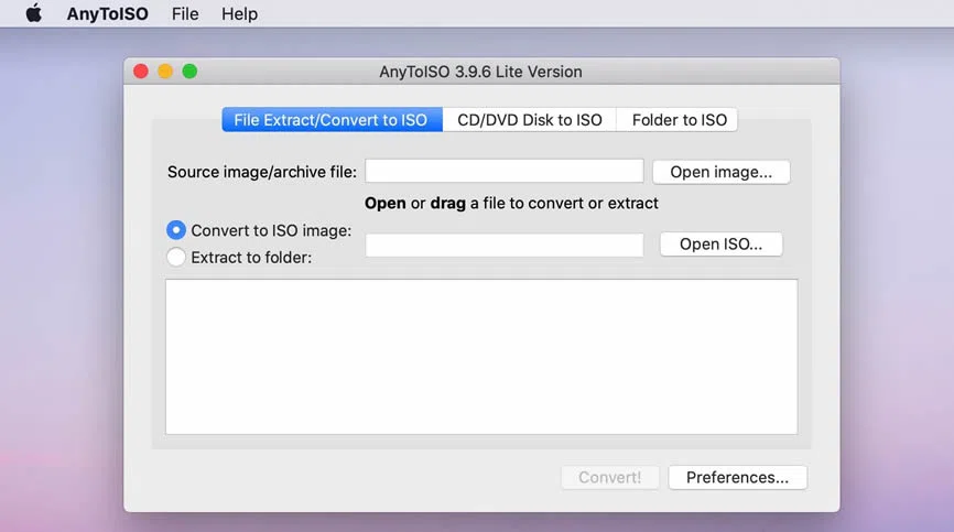 - Supports file extraction and conversion from/to multiple formats including 7Z, BIN, DAA, DEB, DMG, IMG, ISO, ISZ,etc.